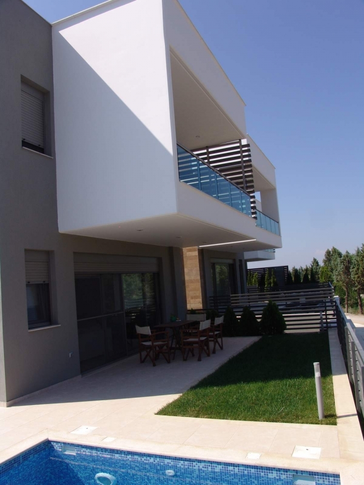 Συγκρότημα έξι κτιρίων διαμερισμάτων και πέντε ιδιωτικών μονοκατοικιών με πισίνες και φυτεμένα δώματα στην επέκταση της Θέρμης.