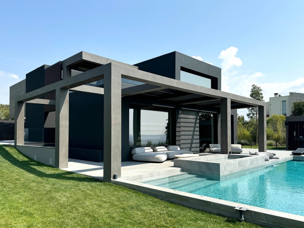 Πολυτελής βιοκλιματική μονοκατοικία σε ιδιόκτητο αγροτεμάχιο νοτιοδυτικού προσανατολισμού με ανεμπόδιστη θέα στον θαλάσσιο ορίζοντα του Θερμαϊκού, κατασκευασμένη στις παρυφές του Πανοράματος. Διαθέτει ιδιωτική πισίνα επιφανειακής υπερχείλισης, υπαίθριο χώρο στάθμευσης, καθώς και άπλετο πράσινο στον περιβάλλοντα χώρο. Μια σύγχρονη κατασκευή υψηλής ενεργειακής κλάσης και αισθητικής, με εκτεταμένο δίκτυο αυτοματισμών, που αποφέρει λειτουργικότητα και άνεση. Το έργο μας έλαβε το "Ασημένιο" βραβείο στην κατηγορία "Best in Luxury Residential" στα Extreriors Awards 2025.